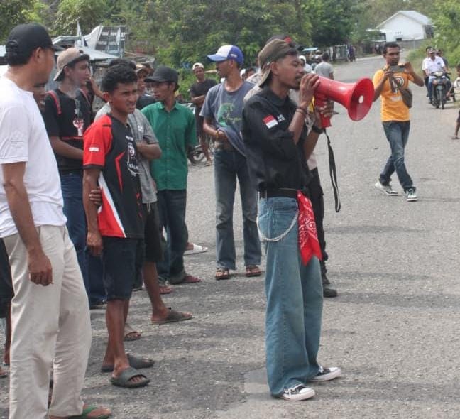 Setelah aksi di kantor camat, massa bergerak ke SPBU Pota untuk menyampaikan protes terkait dugaan pelayanan yang dinilai tidak adil dan diskriminatif terhadap petani dan nelayan.